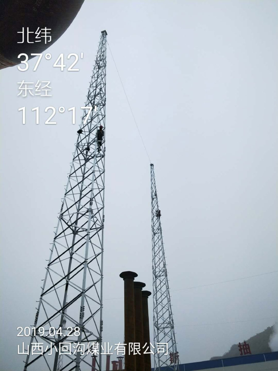 避雷拉線塔又名桅桿塔,主要由一根矗立的細長桿身和沿高度斜向布置的數層纖繩所組成,桿身為主要的承重結構,纖繩在三個或四個方向拉住桿身,以保證桿身的直立和穩定。桿身有獨立鋼管實腹結構,也有用鋼管、圓鋼、角鋼組成的桁架式結構。纖繩采用多股高強度鍍鋅鋼絞線。拉線塔的與自立塔相比優點為節省材料,建設周期短,缺點為占地多,易失衡。